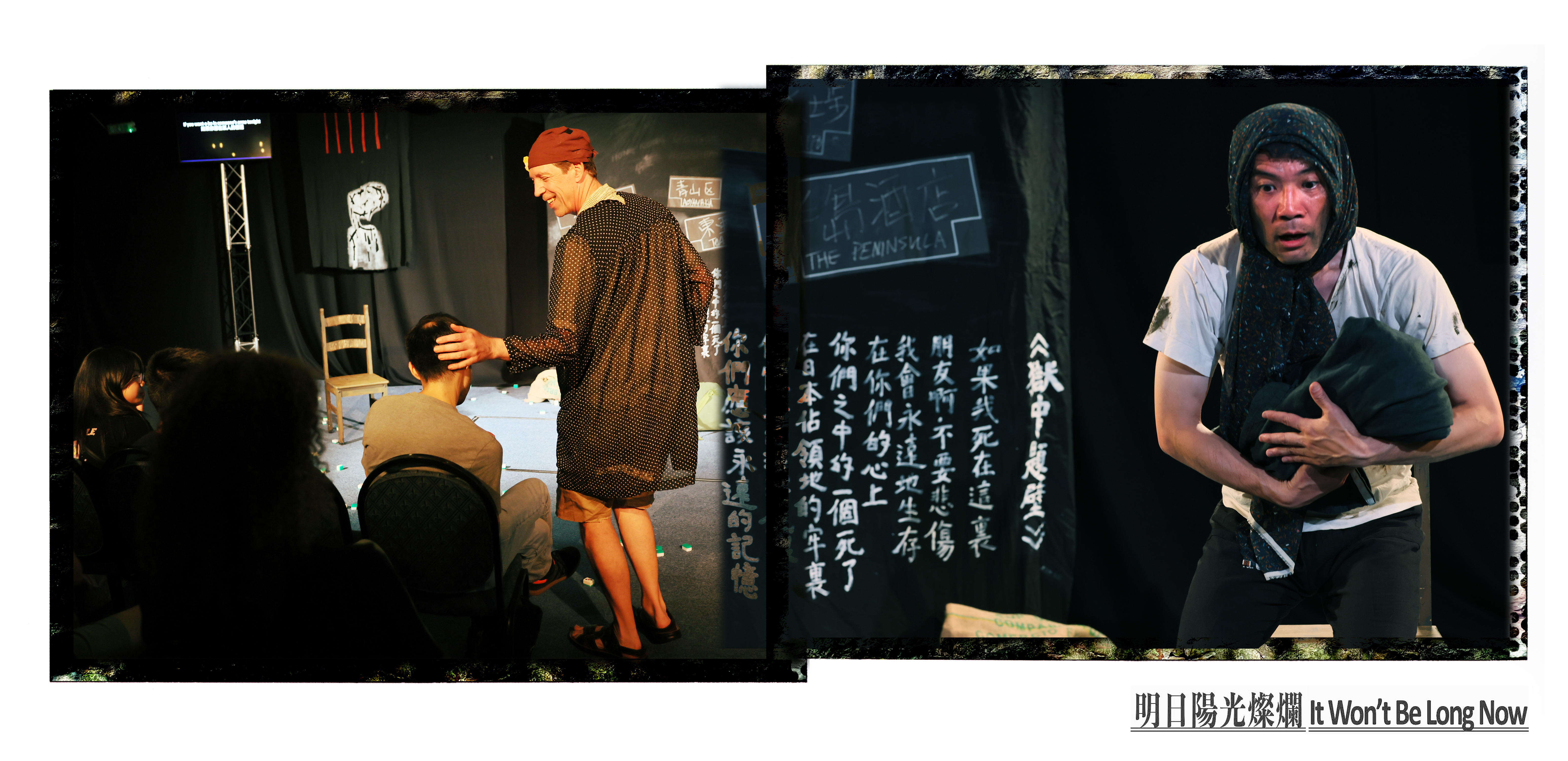 由兩部獨角戲組成(由社區文化發展中心和Bill Aitchison Company製作),由李俊亮(Indy Lee)和Bill Aitchison創作並演出。Bill Aitchison的創作建基於Graham Heywood在香港日佔時期的回憶錄——《It Won’t Be Long Now: The Diary of a Hong Kong Prisoner of War》。Heywood先生曾被關押於英軍位於深水埗的軍營,此軍營後來被日軍改造成外籍戰俘營。他的回憶錄講述了在營內遭受虐待、壓迫以及艱難的生活。