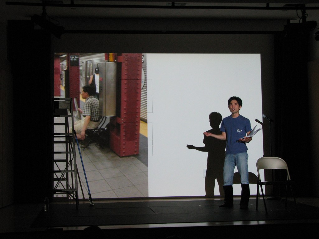 This is about the experience of contact, happening in the years when the world was flat as the people thought. I am a person from Hong Kong granted a fellowship to travel in the United States as a visiting artist. In between learning and studying American theatre and culture, I have also experienced the cultural and language difference while I have been staying in New York City and other cities in the US in the last ten months. During the time, I am frustrated, confused, and disappointed by being included or excluded from this culture. One day, I come up with an idea to develop a performance which is about the experience I had here. It is not to have a chance to perform in New York. But, I would like to decide to leave something here since I don’t know what I will take back home with me. Before the people farewell me, I arrange an occasion to say goodbye to my friends and the city.